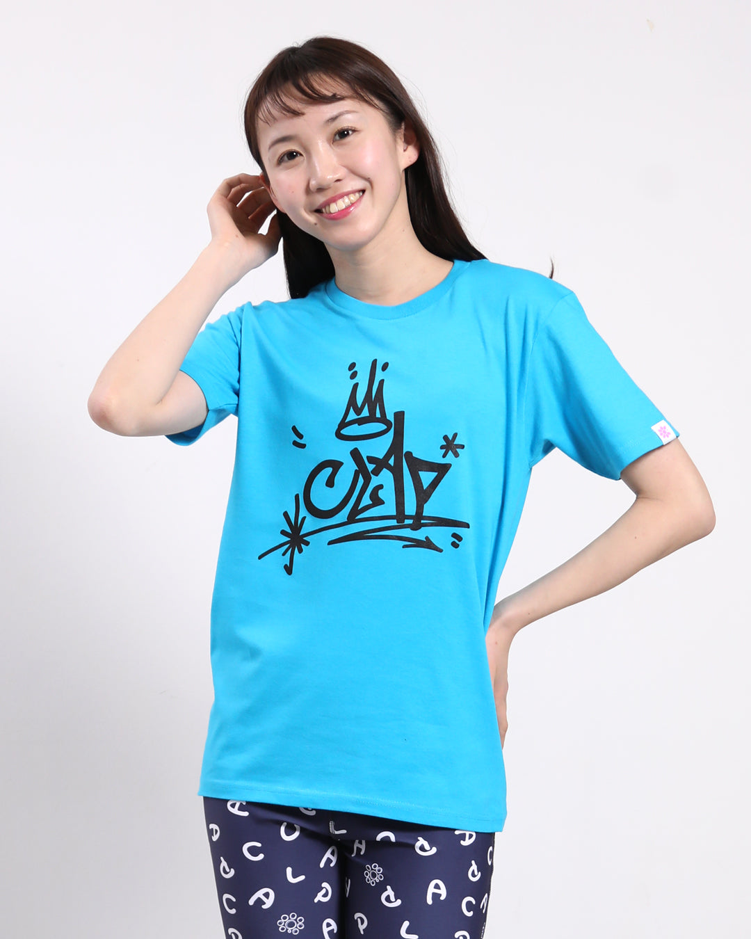 フロントに大胆にあしらった大きなCLAPアイコンがとっても印象的な一枚。スタジオレッスンでも存在感バツグンで視線はあなたのものに!